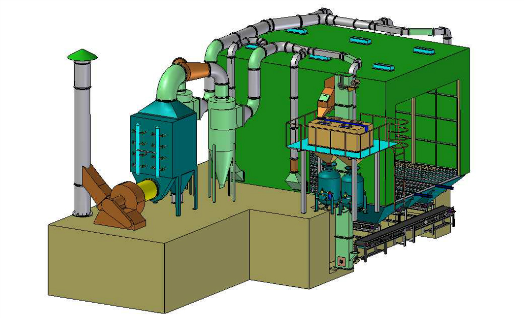 噴砂房的特點(diǎn)是采用蜂窩式吸砂地板技術(shù),采用氣力輸送原理,利用空氣動力將砂料回收,再通過管道吸送到砂塵分選器中進(jìn)行自動砂塵分選,分選出來的有用砂料自動落入噴砂壓力罐,進(jìn)入循環(huán)使用;分選出來的破碎砂料、漆皮、氧化皮、粉塵等無用雜物則自動進(jìn)入集塵器進(jìn)行過濾除塵.