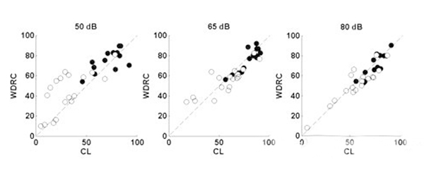<span style="font-size:16px;"> 重度聽力損失是500Hz、1000Hz、2000Hz和4000Hz平均聽閾在61dB HL和80dB HL之間的聽力損失。重度聽損患者更趨向于:</span></p><p><span style="font-size:16px;"> (1)聽力損失時(shí)間較久;</span></p><p><span style="font-size:16px;"> (2)有助聽器佩戴史;</span></p><p><span style="font-size:16px;"> (3)言語(yǔ)分辨率較低;</span></p><p><span style="font-size:16px;"> (4)噪音環(huán)境中交流困難。</span></p><p><span style="font-size:16px;"> 1、重度聽力損失的特點(diǎn)</span></p><p><span style="font-size:16px;"> 60dB HL是單純外毛細(xì)胞損傷和內(nèi)外毛細(xì)胞共同損傷的分界點(diǎn),內(nèi)毛細(xì)胞受損預(yù)示著重度聽力損失,這類患者的頻率選擇能力降低,在相關(guān)頻率范圍內(nèi)難以分辨兩種聲音。這是噪聲環(huán)境下交流困難的主要原因。</span></p><p><span style="font-size:16px;"> 簡(jiǎn)單來(lái)說(shuō),頻率選擇能力越低,自身降噪能力越差,噪聲下識(shí)別信號(hào)的能力也就越差。</span></p><center><span style="font-size:16px;"><img alt="" src="/upfiles/20181016012659501.png" width="440" height="250" /></span></center><p></p><p><span style="font-size:16px;"> 2、選擇合適的放大策略</span></p><p><span style="font-size:16px;"> 反饋抑制:這項(xiàng)技術(shù)在傳統(tǒng)方法的基礎(chǔ)上有更好的減少嘯叫的效果。</span></p><p><span style="font-size:16px;"> 指向性麥克風(fēng):有指向性功能的助聽器可以明顯提高信噪比(SNR)。現(xiàn)在自適應(yīng)指向性麥克風(fēng)廣泛地應(yīng)用于大功率耳背機(jī)中。</span></p><p><span style="font-size:16px;"> 對(duì)于噪聲下言語(yǔ)交流困難的重度聽力損失患者,選配帶有指向性麥克風(fēng)的助聽器效果顯著。</span></p><p><span style="font-size:16px;"> 聽力學(xué)家對(duì)重度聽損人士的指向性麥克風(fēng)做過獲益度測(cè)試,發(fā)現(xiàn)平均言語(yǔ)識(shí)別能力提升了14%。</span></p><p><span style="font-size:16px;"> 重度聽損患者使用指向性功能時(shí)必須保證一定低頻增益,否則他們會(huì)感覺聲音不夠洪亮。</span></p><center><span style="font-size:16px;"><img alt="" src="/upfiles/201810160127134771.png" width="440" height="250" /></span></center><p></p><p><span style="font-size:16px;"> 寬動(dòng)態(tài)范圍壓縮線路(WDRC):</span></p><p><span style="font-size:16px;"> 如下圖,白點(diǎn)是重度聽力損失患者的輔音識(shí)別得分,黑點(diǎn)是輕度至中度聽損患者的輔音識(shí)別得分;每位受試者佩戴四通道的耳背機(jī),驗(yàn)配采用NAL公式;測(cè)試言語(yǔ)聲強(qiáng)度分別為50dB SPL、65dB SPL和80dB SPL;比較WDRC和線性輸出壓縮限制(CL)兩種線路的得分。</span></p><center><span style="font-size:16px;"><img alt="" src="/upfiles/201810160127198326.png" width="600" height="240" /></span></center><p></p><p><span style="font-size:16px;"> 等分位于對(duì)角線附近代表兩種處理方式效果相似,得分位于對(duì)角線上方表示W(wǎng)DRC線路效果更好,而下方則表示CL線路效果更好。</span></p><p><span style="font-size:16px;"> 對(duì)重度聽損患者來(lái)說(shuō),輸入輕聲和中等聲時(shí)WDRC線路比CL線路效果更好;輸入響聲時(shí)兩種線路的區(qū)別并不大。所以使用WDRC線路可以獲得比CL線路更高的言語(yǔ)識(shí)別率。</span></p><p><span style="font-size:16px;"> 壓縮速度:壓縮越深可聽度越高,因?yàn)榛颊呖梢月牭礁鼘挼穆曇繇懚确秶?lt;/span></p><p><span style="font-size:16px;"> 快反應(yīng)壓縮(起效和釋放時(shí)間很短)可以降低元音(響度較大)增益并提高輔音(響度較小)增益,從而提高可聽度。</span></p><p><span style="font-size:16px;"> 所以理論上來(lái)講,對(duì)于重度聽損人士,使用多通道助聽器、低壓縮拐點(diǎn)、高壓縮比、音節(jié)壓縮,可以最大程度提高驗(yàn)配效果。</span></p><center><span style="font-size:16px;"><img alt="" src="/upfiles/201810160127304305.png" width="600" height="500" /></span></center><p></p><p><span style="font-size:16px;"> 但壓縮越深就意味著有聲音失真越大,音節(jié)壓縮丟失了重要言語(yǔ)信息,導(dǎo)致輔音分辨不清。若要保留這些信息,則需要慢反應(yīng)壓縮(起效和釋放時(shí)間較長(zhǎng))。</span></p><p><span style="font-size:16px;"> 最好的情況是在提高可聽度的同時(shí)還保證信號(hào)不失真,但目前很難實(shí)現(xiàn),找到二者的平衡點(diǎn)是最佳的選配方案。</span></p><center><span style="font-size:16px;"><img alt="" src="/upfiles/20181016012736476.png" width="440" height="250" /></span></center><p></p><p><span style="font-size:16px;"> 上圖為一組重度聽力損失患者選配快速和慢速WDRC線路的言語(yǔ)識(shí)別率對(duì)比。</span></p><p><span style="font-size:16px;"> 在輸入聲級(jí)為50和65 dB SPL時(shí),快反應(yīng)壓縮線路的受試者得分明顯比慢反應(yīng)壓縮線路的受試者差;在80 dB SPL輸入聲級(jí)下則并無(wú)明顯差別。</span></p><p><span style="font-size:16px;"> 對(duì)輕度和中度聽力損失患者來(lái)說(shuō),無(wú)論何種輸入聲級(jí),兩種壓縮方式的得分都沒有明顯差別(并未在圖中顯示)。</span></p><p><span style="font-size:16px;"> 對(duì)極重度聽力損失患者來(lái)說(shuō),可聽度比其他任何信息都重要,快反應(yīng)壓縮線路效果比慢反應(yīng)壓縮線路更好。</span></p><p><span style="font-size:16px;"> 綜上所述,在使用多通道WDRC線路助聽器前提下,一定程度的可聽度是必須的,在這個(gè)基礎(chǔ)上要追求最低的失真(