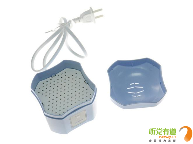 電子干燥劑:電子干燥器是使用市電的,對發熱元件進行恒溫發熱,用熱量蒸發水汽,達到干燥吸潮的目的。目前市面上的電子干燥器種類繁多,有些不但具有工作姿態指示燈,更有定時裝置等,用戶可根據自己的需要進行選購。在使用電子干燥器時,請仔細閱讀產品說明書,不同的產品對于持續干燥時間的長短是不同的。一般來說,電子干燥器的溫度都設定在40度~50度之間,并不會對助聽器產生損害,但是建議單資歷干燥時間不要超過8小時。