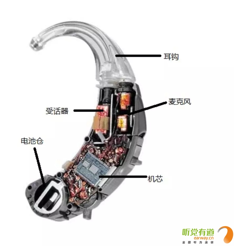 <span style="font-size:16px;"> 在助聽器發(fā)展過程中,出現(xiàn)過很多種助聽器,比如:盒式、眼鏡式、耳背式、耳甲腔式、耳道式、深耳道式等定制式助聽器。如今盒式助聽器、眼鏡式助聽器等幾乎已退出歷史舞臺,現(xiàn)在常見的助聽器有耳背式助聽器、定制式助聽器和RIE受話器外置式助聽器。</span></p><p style="text-align: center;"><span style="font-size:16px;"><img src="/upfiles/201808160127045435.jpg" width="640" alt="" /><br /></span></p><p><span style="font-size:16px;"> 接下來,我們將以耳背式助聽器為例,向您介紹助聽器的外部配件及內(nèi)部構(gòu)造!</span></p><p><span style="font-size:16px;"> 1、機身內(nèi)部構(gòu)造</span></p><p style="text-align: center;"><span style="font-size:16px;"><img src="/upfiles/201808160127276133.jpg" width="640" alt="" /><br /></span></p><p><span style="font-size:16px;"> 麥克風:獲取聲音并將聲音信號轉(zhuǎn)化為電信號。</span></p><p><span style="font-size:16px;"> 機芯:將電信號進行放大、處理,機芯包含放大器、音量調(diào)控電位器、微調(diào)電位器等。</span></p><p><span style="font-size:16px;"> 受話器:將電信號轉(zhuǎn)化為聲音信號,通過導聲管和耳模傳送給耳朵。耳背式助聽器和定制式助聽器的受話器都在機身內(nèi);RIE受話器外置式助聽器的受話器放置在耳道中。</span></p><p><span style="font-size:16px;"> 電池倉:用于安放電池來供電,使助聽器正常工作。</span></p><p><span style="font-size:16px;"> 2、電池</span></p><p><span style="font-size:16px;"> 電池放置于電池倉內(nèi),給予助聽器能量。市面上常見的助聽器電池分為4類:</span></p><p><span style="font-size:16px;"> A675:一般用于超大功率耳背式助聽器。</span></p><p><span style="font-size:16px;"> A13:一般用于標準耳背式或耳甲腔式助聽器。</span></p><p><span style="font-size:16px;"> A312:一般用于耳道式助聽器。</span></p><p><span style="font-size:16px;"> A10:一般用于深耳道式助聽器。</span></p><p><span style="font-size:16px;"> 電池大小:A675>A13>A312>A10,電池越大,儲存能量越多。</span></p><p><span style="font-size:16px;"></span></p><p> 更多詳情請登錄www.chisha.net.cn。</p>" />