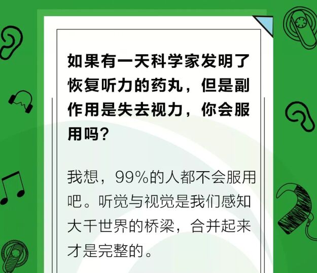 假如有一天科學家發明了恢復聽力的藥丸,但副作用極大,你會使用嗎?