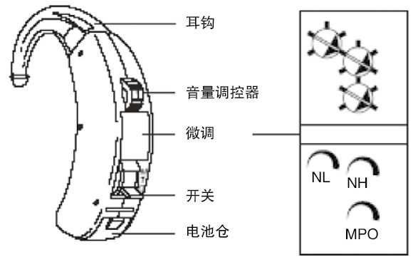 微調控制器:控制器的作用是調節放大器的參數,使得最終輸出聲音符合每位弱聽人士的放大需求??刂破骺梢允菣C械的電位器(用螺絲刀調節),也可以是寄存器(通過電腦調節參數)。微調是選配過程中最重要的部分。</p><p> </p><center><img alt="" src="/upfiles/201906100134423907.png" width="587" height="368" /></center><p></p><p style="text-align: center;">圖1 耳背式助聽器內部結構圖</p><p> 1. 開關</p><p> 傳統的耳背式和盒式助聽器一般采用“O-T-M”開關,定制機的開關常常與音量控制或程序切換按鈕合為一體。耳背式助聽器的“O-T-M”開關非常容易受潮氣影響而致使整機故障,因此新型的設計采用程序切換按鈕或電池門作開關。</p><p> </p><center><img alt="" src="/upfiles/201906100134484438.png" width="400" height="186" /></center><p></p><p style="text-align: center;">圖2 電池門</p><p> 2. 音量調控(VC)</p><p> 音量調控(VC)用于讓用戶自己調節音量。有些數字助聽器的音量調節范圍是可以通過軟件設置的,驗配師可以為用戶設置適合的調節范圍。</p><p> </p><center><img alt="" src="/upfiles/201906100134536274.png" width="383" height="283" /></center><p></p><p style="text-align: center;">圖3 音量調控器</p><p> 3. 微調</p><p> 微調電位器用于調節助聽器的輸出信號,一般由驗配師根據用戶的聽力損失設置。微調有很多種類,最常見的是頻響調節器,助聽器的頻率特性由濾波器決定,濾波特性與電阻和電容相關,為了改變助聽器的頻響,采用一個小的可變電位器來調節。</p><p> 1)NH—低頻調控:通過衰減一部分低頻成分而達到提高高頻的作用,其主要效果為低頻噪音的下降。</p><p> </p><center><img alt="" src="/upfiles/201906100135012711.png" width="494" height="336" /></center><p></p><p style="text-align: center;">圖4 NH微調的作用</p><p> 2)NL—高頻調控:通過衰減一部分高頻成分而達到提高低頻的作用,其主要效果為言語清晰度的提高和聲反饋的消除。</p><p> </p><center><img alt="" src="/upfiles/201906100135088732.png" width="498" height="340" /></center><p></p><p style="text-align: center;">圖5 NL微調的作用</p><p> 3)MPO—最大輸出限制:為了防止聲輸出過高超過弱聽人士的不適閾,大多數助聽器都有最大聲輸出限幅裝置,如削峰PC、自動增益控制AGC電路等。削峰電路就是把信號中超過某一限度的峰值部分削去,但削峰后輸出有失真,且信噪比小;AGC電路是較先進的限幅控制電路,它把大于不舒適閾的輸出聲壓縮后再輸出,因此不會帶來失真,但是壓縮需要起效時間,對于特別敏感的弱聽人士,有時采用削峰更安全。</p><p> </p><center><img alt="" src="/upfiles/201906100135141158.png" width="372" height="298" /></center><p></p><p> </p><center><img alt="" src="/upfiles/20190610013519576.png" width="374" height="293" /></center><p></p><p style="text-align: center;">圖6 削峰后帶來失真</p><p> </p><center><img alt="" src="/upfiles/201906100135242320.png" width="385" height="369" /></center><p></p><p> </p><center><img alt="" src="/upfiles/201906100135289779.png" width="351" height="307" /></center><p></p><p style="text-align: center;">圖7 壓縮保留了原信號的形態</p><p> 4)CK—壓縮拐點/CR——壓縮比:是壓縮線路獨有的微調。自動增益壓縮控制(AGC)是一種反饋裝置,能自動降低助聽器的增益而不引起失真,從而限制助聽器輸出。一旦自動增益壓縮控制起作用,在輸入和輸出之間就會建立起新的線性關系。壓縮拐點是壓縮起效所需要的最小輸入聲壓級,拐點設置得越高,助聽器就越接近線性放大;壓縮比為壓縮啟動后,輸入變化量與輸出變化量之比,壓縮比的絕對值越大,表明增益越小,當壓縮比等于1:1時表示線性放大。</p><p> </p><center><img alt="" src="/upfiles/201906100135335169.png" width="368" height="349" /></center><p></p><p> </p><center><img alt="" src="/upfiles/2019061001353878.png" width="367" height="356" /></center><p></p><p style="text-align: center;">圖8 拐點和壓縮比控制</p><p> 5)增益控制(GC)和音量調控(VC)用于調節全頻段的主聲增益,佩戴者感覺到的是整體響度的大小變化,通常VC的調節范圍小于GC。</p><p> </p><center><img alt="" src="/upfiles/201906100135431972.png" width="384" height="323" /></center><p></p><p style="text-align: center;">圖9 增益控制</p><p> 更多詳情請登錄聽覺有道助聽器www.chisha.net.cn</p>" />
