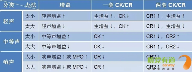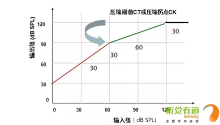 顧名思義,壓縮就是把超過一定強度的聲音減小至聽損患者縮小的殘余聽覺動態(tài)范圍里。相較于線性放大,壓縮可以有效達到“小聲聽得見,大聲受得了”的要求,尤其適用于感音神經性患者。</p><p> 壓縮參數主要有三個:壓縮拐點/壓縮閾值(CK/CT)、壓縮比(CR)與壓縮時間(起效時間AT,釋放時間RT)。下圖:橫坐標代表輸入級,即未經助聽器放大的聲音;縱坐標代表輸出級,即放大后的聲音。輸入與輸出的關系:輸出級=輸入級+增益,亦可表示:放大后的聲音=放大前的聲音+放大量。有了這個基礎,我們就可以清楚地理解這兩個參數的含義并進行調節(jié)。</p><p> 1、壓縮拐點(CK):線性放大與壓縮放大的臨界輸入級,此處為60 dB SPL,即輸入聲強度在60 dB SPL以下時為線性放大,超過60 dB SPL為壓縮放大。①紅線的輸入級范圍為0~60 dB,這段的聲音為線性放大,隨意找一個輸入級,用它對應的輸出級減去輸入級,得出線性放大的增益為30 dB;②當輸入級大于60 dB時,綠色曲線為壓縮放大,輸出與對應輸入的差值不再是30 dB,而是隨著輸入級增加,增益逐漸減小;③當輸出達到最大輸出限制時,輸出不再增大,保持在最大輸出限制位置。</p><p> </p><center><img alt="" src="/upfiles/201906120320158907.png" width="440" height="250" /></center><p></p><p> 2、壓縮比(CR):輸入級差值與輸出級差值的比值。上圖中線性狀態(tài)時壓縮比為1:1,可以找兩對數值,(輸入60-輸入0)/(輸出90-輸出30)=60/60=1:1。壓縮狀態(tài)時壓縮比為2:1,同樣可以找兩對數值,(輸入120-輸入60)/(輸出120-輸出90)=60/30=2:1。</p><p> 3、壓縮方式(CM):由于起效時間(AT)與釋放時間(RT)的不同組合構成不同的壓縮方式。</p><p> 助聽器由線性變換到壓縮時所需的穩(wěn)定時間為起效時間。起效時間短,說明對大聲壓縮及時,不會造成聽力傷害;起效時間長,說明對大聲壓縮緩慢,有可能短暫感覺刺耳,但可以最大程度還原小聲與大聲的強度差異感。</p><p> 助聽器由壓縮回到線性時所需的穩(wěn)定時間為釋放時間。釋放時間短,說明對小聲及時線性放大,避免小聲聽不見;釋放時間長,說明對小聲還在壓縮,放大不及時,有可能小聲聽不見,但可以最大程度還原大聲和小聲的強度差異感。</p><p> 我們可以做個比喻來了解壓縮的概念。假使你在高速路上,突然前方出現(xiàn)一個大大的警示牌,提示有事故發(fā)生,這時你需要迅速踩剎車以防撞擊。越早踩剎車相當于越早壓縮(壓縮拐點越小),剎車的力度越大相當于壓縮比越大,開始剎車至時速降至安全時速所需時間相當于起效時間,過了事故點踩油門,車速恢復至高速所需時間相當于釋放時間。</p><p> 壓縮是為了保護人們聽覺系統(tǒng)免受瞬間或持續(xù)中、大強度聲音的刺激,同時又能有效放大各種小聲的基本技術手段,可以使小聲、中等聲和大聲無一遺漏地進入聽障患者縮小的聽覺動態(tài)范圍中。</p><p> 恰當的壓縮拐點與壓縮比滿足了聽障患者達到“小聲聽得見、大聲受得了”的要求,而壓縮的起效時間與釋放時間設定需要考慮聽障患者個性化的聆聽喜好。</p><p> 起效時間與釋放時間都短,優(yōu)點是小聲放大及時、大聲壓縮及時,即小聲聽得到大聲不覺吵,缺點是大小聲強度差異感不大;起效時間短釋放時間長,優(yōu)點是大小聲強度差異感真實,音節(jié)間噪聲小,缺點是有可能小聲放大不足。</p><p> 事實上,各企業(yè)的助聽器軟件往往可以直接調節(jié)輕聲增益、中等聲增益、大聲增益與主增益而間接控制壓縮參數,有的軟件可見一套CK/CR,有的軟件可見兩套CK/CR。有些軟件會自動默認為自適應壓縮方式,能夠根據聲音強度差異自動調整。</p><p> 下圖匯總了對不同強度聲音不適的解決辦法,供大家參考。</p><p> </p><p><center><img alt="" src="/upfiles/201906120320202761.png" width="640" height="240" /></center><center><p style="text-align: left;"> 更多詳情請登錄聽覺有道助聽器www.chisha.net.cn</p><br /></center></p>" />