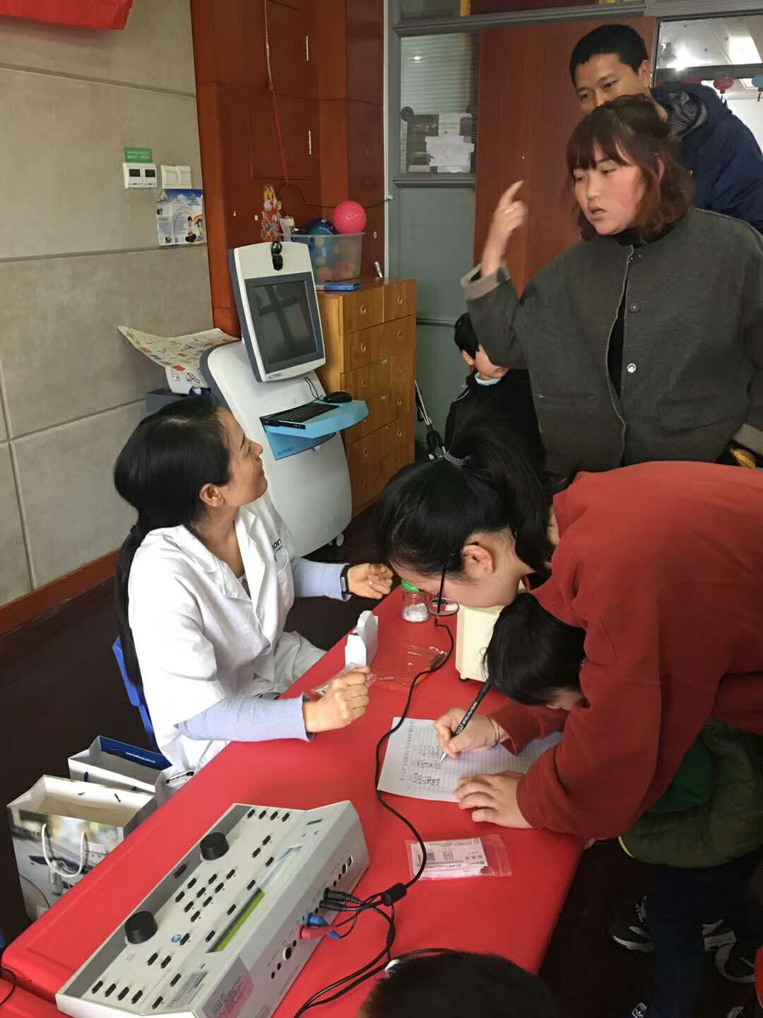 <span style="font-size:16px;"> 為更好提高人民群眾的愛耳與護(hù)耳意識(shí),有效減少聽障發(fā)生,促進(jìn)我國(guó)聽障預(yù)防與康復(fù)工作的發(fā)展,由聽覺有道助聽器驗(yàn)配中心發(fā)起的“愛耳月在行動(dòng)”——聽障兒童免費(fèi)聽力檢測(cè)活動(dòng)在江蘇昆山市舉行。</span></p><p><span style="font-size:16px;"><span style="font-size:16px;"> </span>昆山市聽覺有道助聽器驗(yàn)配師出席活動(dòng)并與孩子們親切互動(dòng),共同呼吁全社會(huì)關(guān)注聽障兒童的全面康復(fù)。</span></p><p><span style="font-size:16px;"><br /></span></p><p style="text-align: center;"><span style="font-size:16px;"> <img src="/upfiles/201803220554493300.jpg" width="640" alt="" /> </span></p><p style="text-align: center;"><span style="font-size:16px;"><br /></span></p><p style="text-align: center;"><span style="font-size:16px;"> <img src="/upfiles/201803220554497204.jpg" width="640" alt="" /> </span></p><p style="text-align: center;"><span style="font-size:16px;"><br /></span></p><p style="text-align: center;"><span style="font-size:16px;"> <img src="/upfiles/201803220554496041.jpg" width="640" alt="" /> </span></p><p style="text-align: center;"><span style="font-size:16px;"><br /></span></p><p style="text-align: center;"><span style="font-size:16px;"><img src="/upfiles/201803220554499339.jpg" width="640" alt="" /><br /></span></p><p style="text-align: center;"><span style="font-size:16px;"><br /></span></p><p><span style="font-size:16px;"> 據(jù)統(tǒng)計(jì)數(shù)據(jù)顯示,目前我國(guó)有聽力語言障礙的人數(shù)為2780萬,其中0至6歲的聽障兒童約有13.7萬,每年由于藥物、遺傳、感染、疾病、環(huán)境噪聲污染、意外事故等原因所造成的新生耳損幼兒約2.3萬余名。聽力語言障礙嚴(yán)重?fù)p害人的聽覺言語功能,影響人的身心健康與生活質(zhì)量,并造成一定的社會(huì)與經(jīng)濟(jì)負(fù)擔(dān)。有效預(yù)防聽力殘疾,需要從源頭上避免聽力障礙的發(fā)生。</span></p><p><span style="font-size:16px;"><br /></span></p><p style="text-align: center;"><span style="font-size:16px;"><img src="http://www.chisha.net.cn/upfiles/201803220554493192.jpg" width="640" style="font-size:16px;" alt="" /><br /></span></p><p style="text-align: center;"><span style="font-size:16px;"><br /></span></p><p style="text-align: center;"><span style="font-size:16px;"><img src="http://www.chisha.net.cn/upfiles/201803220554494355.jpg" width="640" style="font-size:16px;" alt="" /><br /></span></p><p style="text-align: center;"><span style="font-size:16px;"><br /></span></p><p style="text-align: center;"><span style="font-size:16px;"><img src="http://www.chisha.net.cn/upfiles/201803220554492694.jpg" width="640" style="font-size:16px;" alt="" /><br /></span></p><p style="text-align: center;"><span style="font-size:16px;"><br /></span></p><p><span style="font-size:16px;"> 活動(dòng)現(xiàn)場(chǎng),驗(yàn)配師為聽障兒童聽力檢查、助聽器調(diào)節(jié)、分享康復(fù)訓(xùn)練知識(shí)等。同時(shí),現(xiàn)場(chǎng)介紹我國(guó)聽障兒童康復(fù)現(xiàn)況,傳播聽障兒童康復(fù)理念,幫助聽障兒童全面康復(fù),聽見未來。</span></p>" />