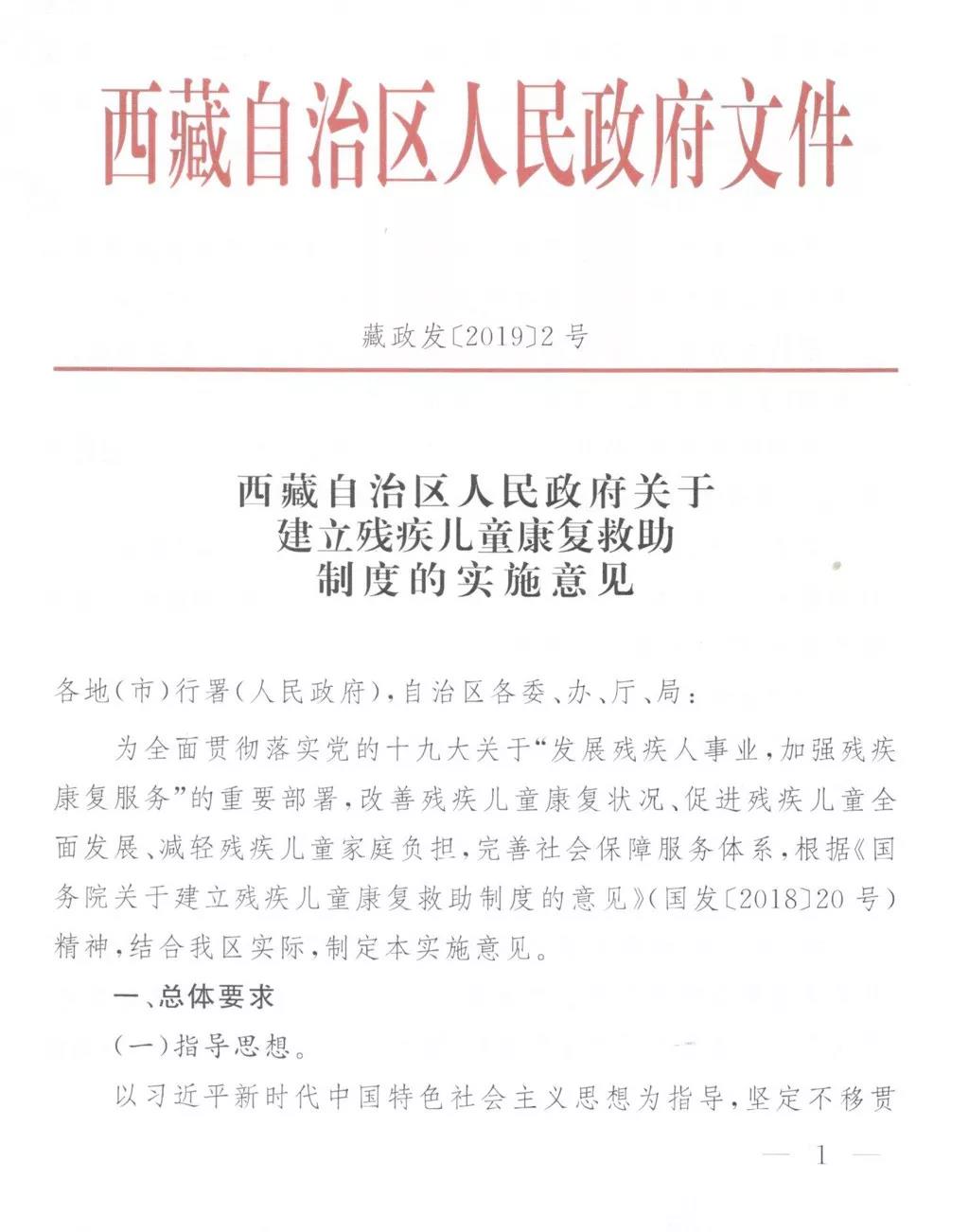 西藏自治區(qū)人民政府關(guān)于建立殘疾兒童康復(fù)救助制度的實(shí)施方案