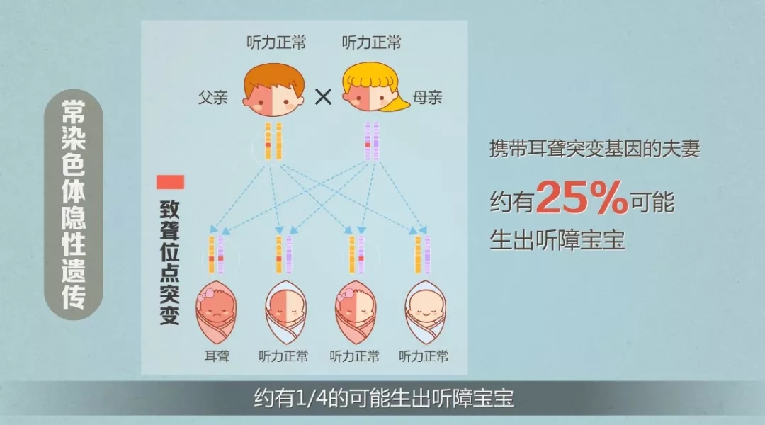 <iframe width="640px" height="380px" frameborder="0" src="https://v.qq.com/txp/iframe/player.html?vid=p084275qasv" allowfullscreen="true"></iframe></p><p> 中國,近14億的人口中就有著2780萬人,倍受聽力障礙的煎熬。</p><p> <strong>每年有6萬余名聽障兒童</strong></p><p> 中國每年有6萬余名新生兒由于遺傳、藥物、感染、疾病、環境等方面的原因成為聽障兒童,其中有60%的聽力障礙來自遺傳,成為最大的致聾因素,每100個聽力正常的父母就有6個攜帶遺傳性耳聾突變基因,攜帶者會傳遞給孩子引發聾病。</p><p style="text-align: center;"><img src="/upfiles/201903050159331282.jpg" width="640" alt="" /><br /></p><p style="text-align: center;"><img src="/upfiles/20190305020124203.jpg" width="640" alt="" /><br /></p><p> 聽障群體是一個龐大且每年都在增長的弱勢群體,耳聾一旦形成便不可恢復,一個聽障寶寶的誕生,將會給家庭和社會帶來嚴重的經濟負擔和不可估量的精神損失。</p><p> <strong>遺傳成為最大的導致耳聾的因素</strong></p><p> 遺傳性耳聾的遺傳方式多數為:“常染色體隱性遺傳”和“線粒體母系遺傳”常染色體隱性遺傳,雙方聽力正常的攜帶者,約有1/4的可能生出聽障寶寶。線粒體基因突變屬于母系遺傳。</p><p style="text-align: center;"><img src="/upfiles/201903050212503998.jpg" width="640" alt="" /><br /></p><p style="text-align: center;"><img src="/upfiles/201903050213053857.jpg" width="640" alt="" /><br /></p><p> 如果媽媽攜帶藥物耳聾基因突變,她的孩子無論男孩還是女孩,一旦用藥物不當,便會致聾!</p><p> <strong>讓“靜音鍵”不再被按下</strong></p><p style="text-align: center;"><strong><img src="/upfiles/201903050213245111.jpg" width="640" alt="" /><br /></strong></p><p> 耳聾目前不可根治,但可防可控。</p><p> 主要防控手段有:</p><p> 一級預防:婚前孕前耳聾基因檢測;</p><p> 二級預防:高危孕婦產前篩查與診斷;</p><p> 三級預防:新生兒聽力和基因聯合篩查。</p><p style="text-align: center;"><img src="/upfiles/201903050213445460.jpg" width="640" alt="" /><br /></p><p> 耳聾基因篩查不僅能及早發現先天遺傳性聽障寶寶,及早采取干預和康復措施,避免因聽力障礙影響語言發育能力,更重要的是,能發現藥物性和遲發性耳聾高危人群。</p><p> 第一時間為個體及其家族成員提供明確的用藥指導和生活指南,降低后天錯誤用藥或不良的環境因素導致的耳聾風險。對于聽障群體還可從分子水平上明確病因,及早進行助聽器或電子耳蝸植入的康復治療,避免因聾致啞導致智力缺陷,指導聽障夫婦優生優育,防止再次生育聽障寶寶。</p><p> 愛耳防聾,從基因檢測開始!</p>" />